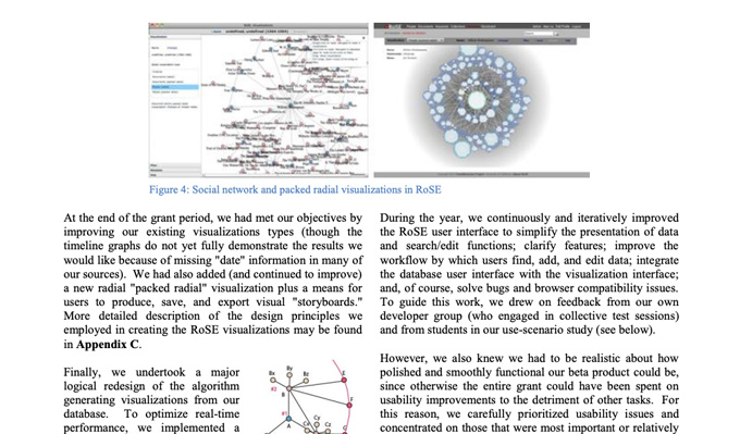 - RoSE (Research-Oriented Social Environment). Led visualization design in a